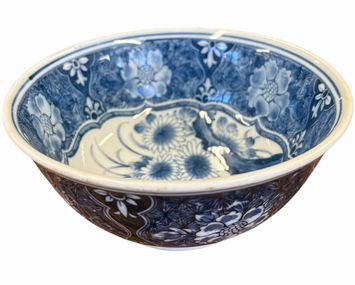 Asian blue/white ceramic bowl, 2.75" h, 6" diam.