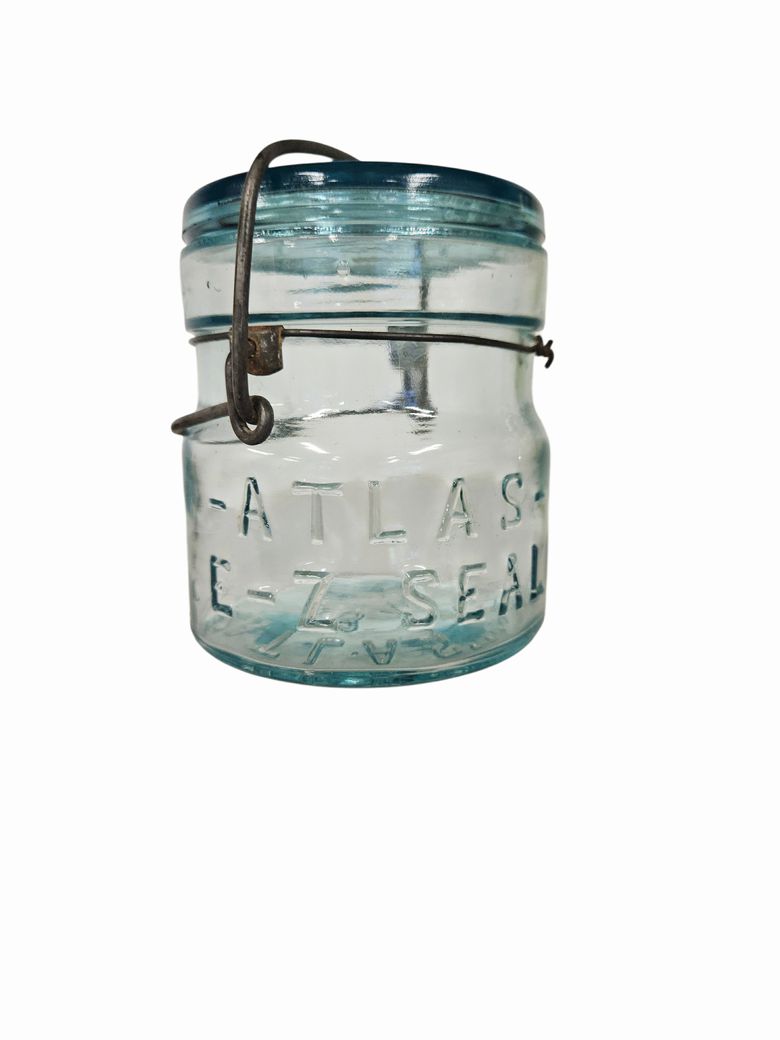 Atlas E-Z Seal 1/2 Pint Mason Jar Clear Wire Bail Lid Vintage Antique