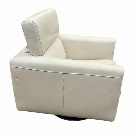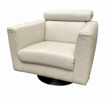Bloomingdale's White Leather Swivel Chair, H. 29.5 in. x W. 31 in. x D. 33 in.