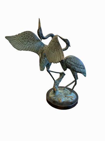 Bronze Sculpture w/Green Patina Finish Of Two Herons 13x13"