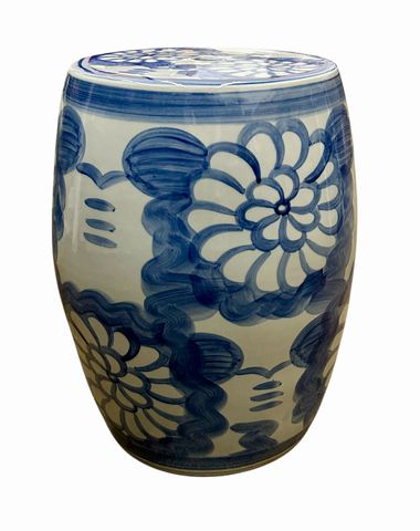 Chinese B&W Abstract Floral Garden Seat, 18.5 in. x 14.5 in. Diam.