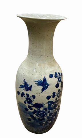 Chinese B&W Bird & Flower Porcelain Mallet Vase, H. 23.5 in. x 10 in.