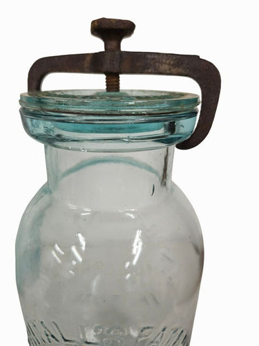 Millville Atmospheric glass canning jar, glass top (1800s), 8" h