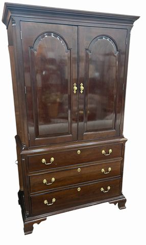 Vintage Stickley Traditional Chippendale Style Solid Mahogany Wardrobe, H. 72 in, x W. 41.5 in. x D. 22.5 in.