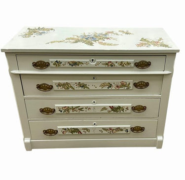 Victorian Painted and Decoupage Chest of Drawers, H. 31 in. x W. 41 in.