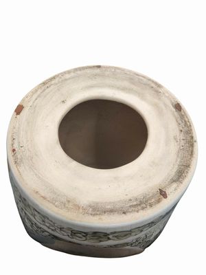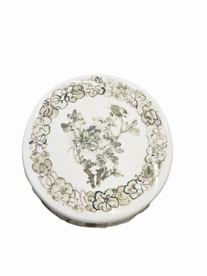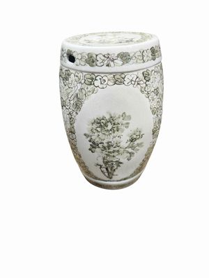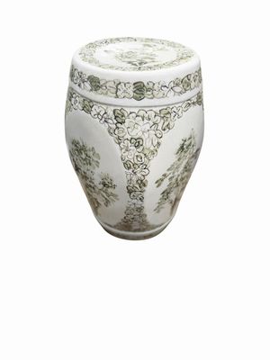 Ceramic Garden Stool, Green Vine And Flower Pattern, 11" Round x 18 1/2"H