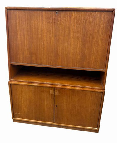 MCM Teak 4 Door 2 Part Cabinet, H. 52 in. x W. 39.5 in. x D. 17.825 in.
