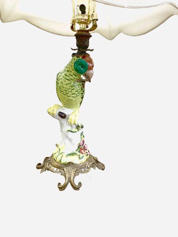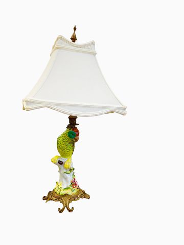 Pair oF Porcelain Parrot Table Lamps w/Gilt & Bronze 26x12"