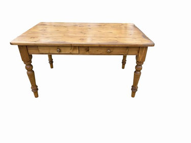 English Farmhouse Style Pine Two Drawer Table, H. 31 in. x L. 59 in. x W. 39 in.