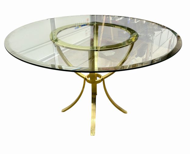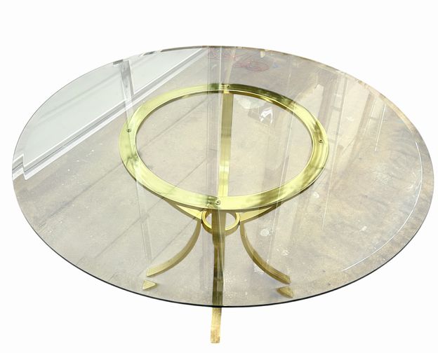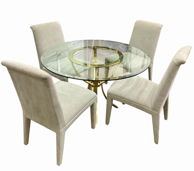 Glass (48") & Chrome Base Table w/4 Upholstered Dining Chairs, Table: H. 29 in., Chairs: H. 37 in. x W. 20.5 in. x D. 22 in.