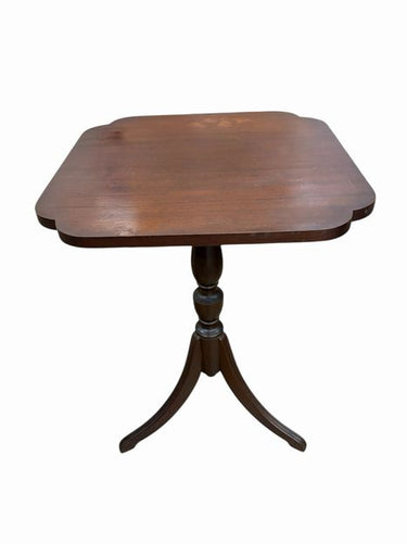Mahogany pedestal tilt-top table, 29.75 (flat), 39.25" (tilted), 20" x20"