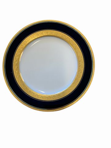 12 Charles Ahrenfeldt Of Limoges Cobalt Blue w /Gold Trim Dessert Plates 9"rd.