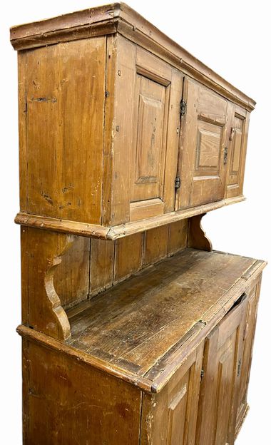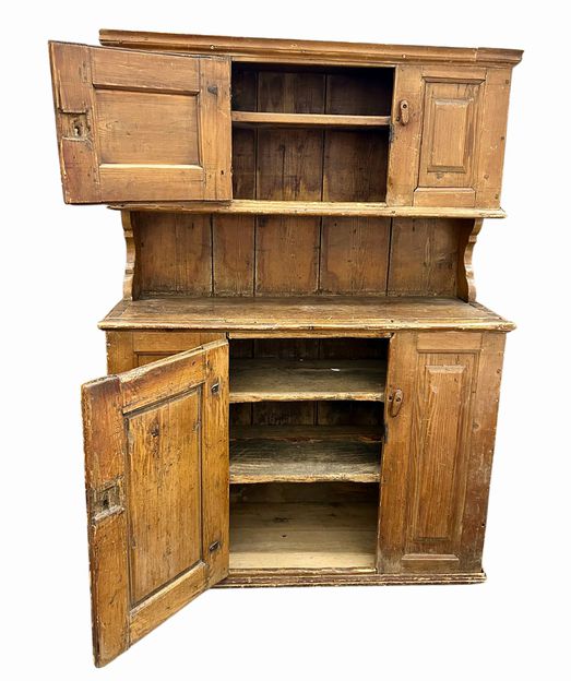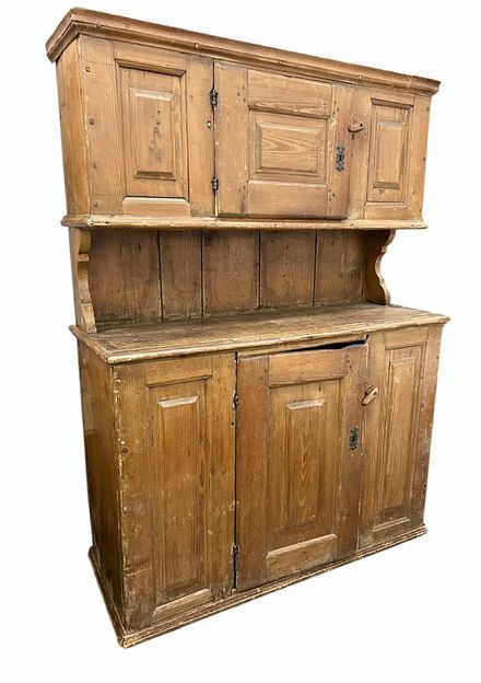 18th century Primitive Pine Step-Back Cupboard, H. 7.5 in. x W. 52.25 in. x D. 20 in.