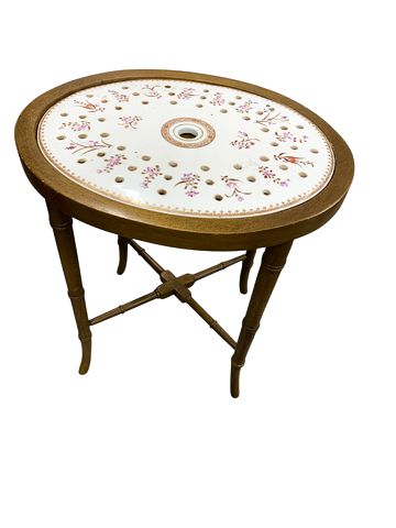 19th Century Chinese Export Mazarin Insert On a 20th Century Faux Bamboo Wooden Regency Style Base 18"h x15.5"w x12"d