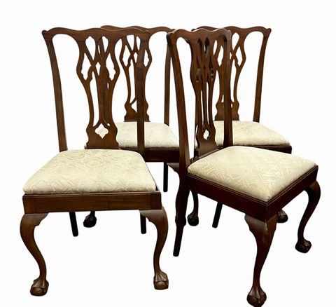 4 Chippendale Style Mahogany Dining Chairs, H. 39.5 in. x W. 22 in.