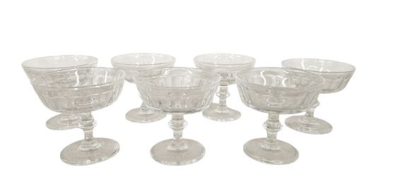 7 MCM Handblown Stemmed Crystal Fruit Compote Dishes 3.75"h x 4" dia
