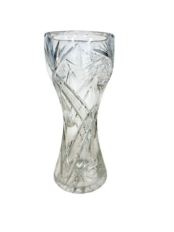 American Brilliant Period Cut Glass Corset Vase 10x4"