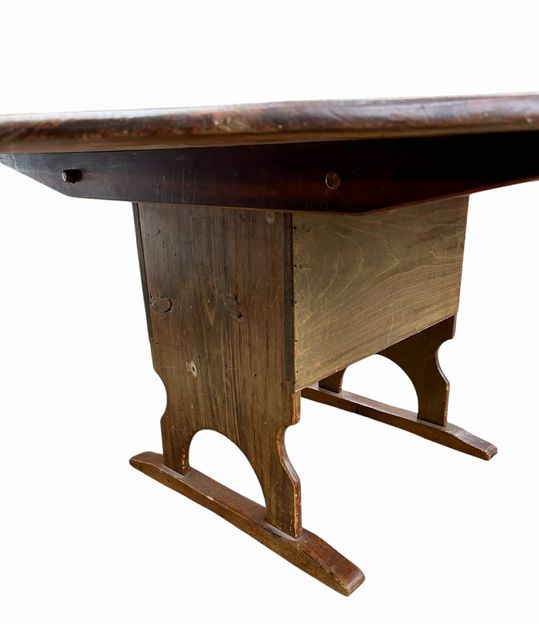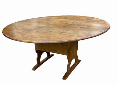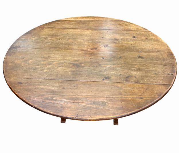 American Pine 60 in. Round Dining Table, H. 28.5 in. (Table top and part of base are 19th century)
