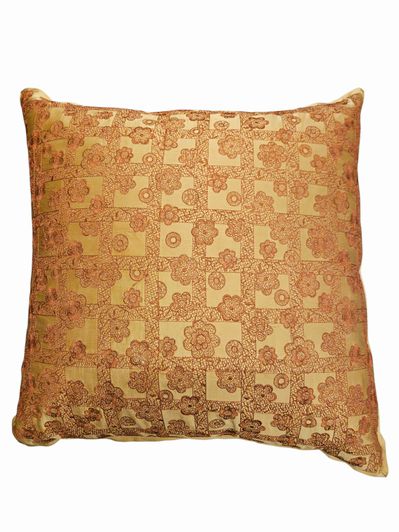 Ann Gish Silk Satin Gold w Ebroidered Top, Down Insert Pillow 16"sq.
