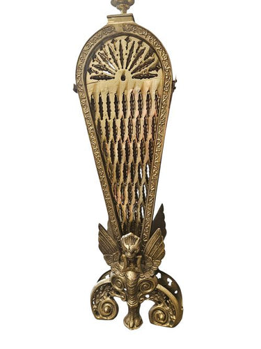 Antique Brass Fireplace Fan w Winged Gargoyle 25.5"h x 34"w