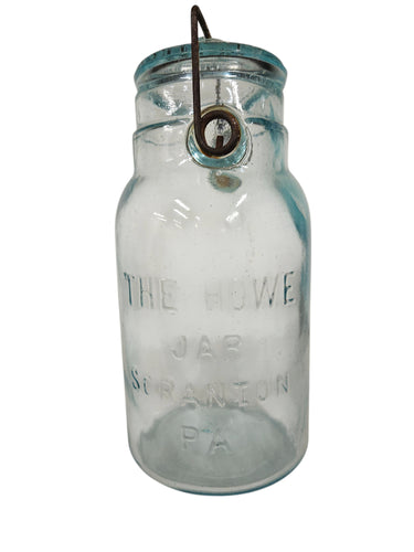 Antique "The Howe" glass canning jar, glass top, Bail close (1800s), 9" h