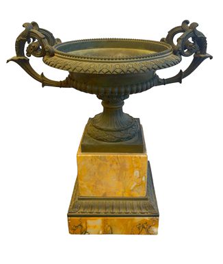 Antique Italian Grand Tour patinated bronze tazza on Siena marble pedestal, 13" h, 12" w, 7.5" d