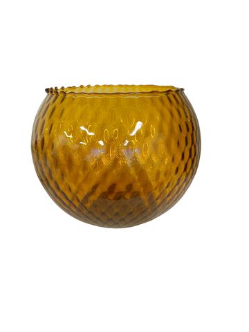 Art Glass Amber Bowl w/Diamond Pattern 7x9"