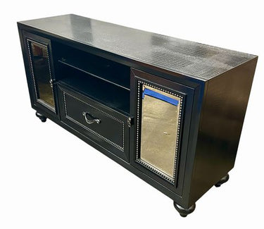 Black Alligator Texture & Mirror TV Cabinet, H. 32 in. x W. 60 in. x D. 18.5 in.
