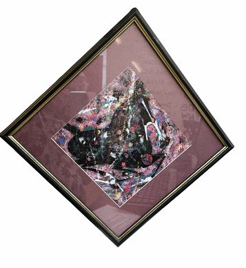 "Black Horse," framed offset print by Jiang, 12" x 12"