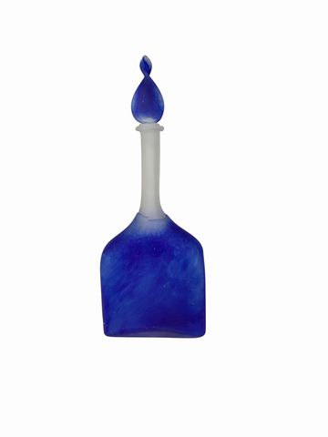 Blue Scavo Art Glass Bottle w/Bulbous Collar 16x6"