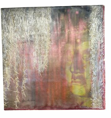 "Buddha with Spanish Moss," unframed original photo encaustic, 12" h x 12" w x 1.5" d