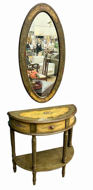 Butler Specialty Company Living Room Mozart Demilune Console Table & Oval Mirror, Console: H. 30.5 in. x W. 31.5 in. x D. 13 in., Mirror: H. 37.75 in. x W. 19.5 in.
