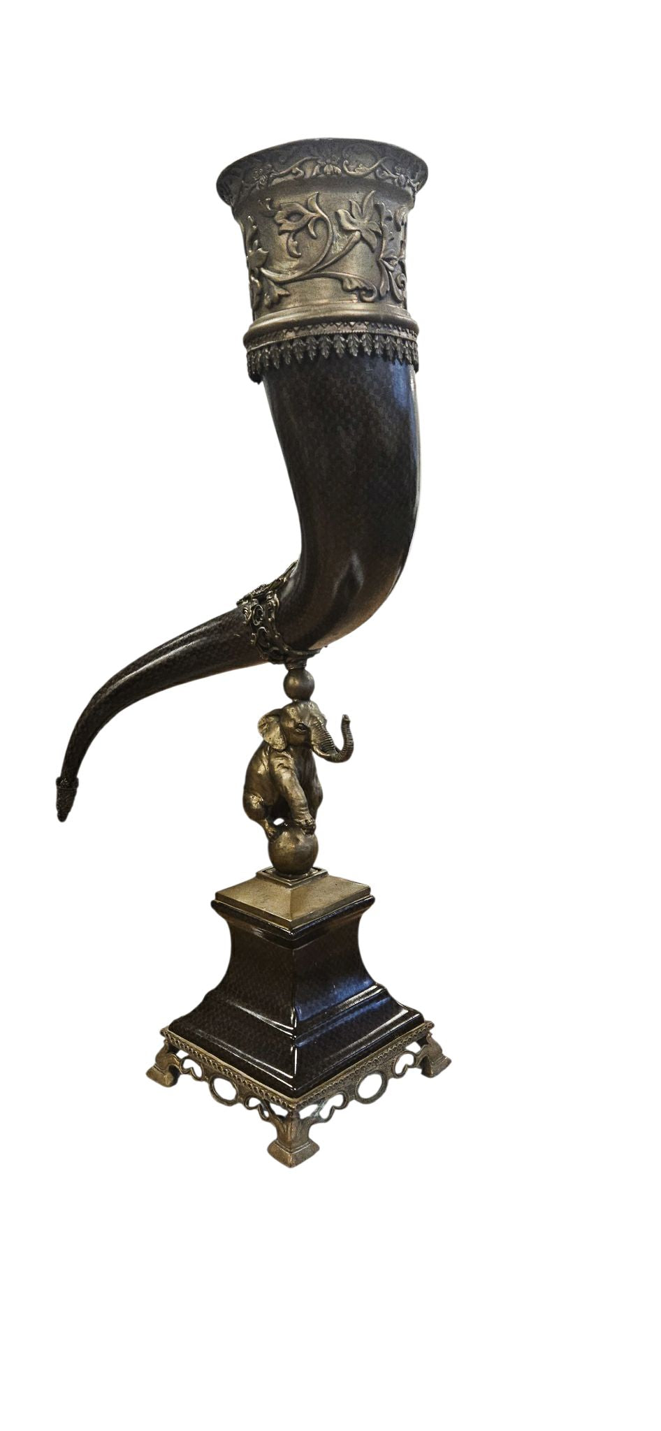 Castillion porcelain and brass elephant horn Centerpiece/vase 26"h x 22"l