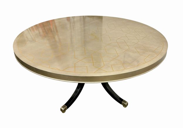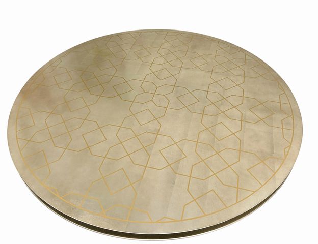 Center of Attention 60 in. Round Silver Leaf & Gold Stencil Dining Table, H. 30.5 in.