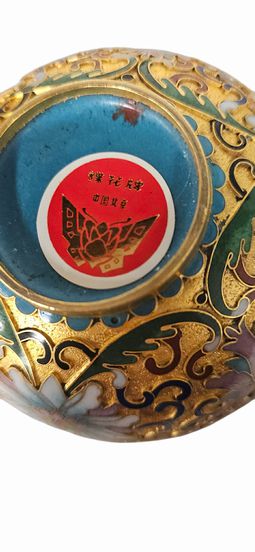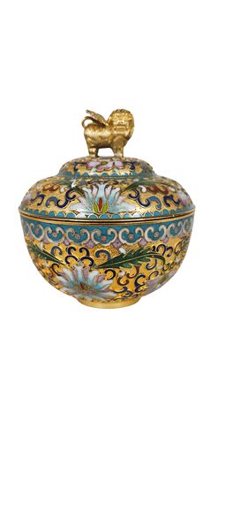 Chinese Cloisonne Covered Trinket Dish/Cup 4.25H" x 3.75"dia