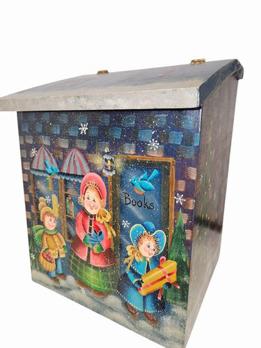 Christmas Letter Wooden Mail Box Handpainted 12"hx8.5"wx8.5"d