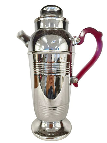 Chrome Deco Shaker, clear red bakelite Handle 12"h x 9"w