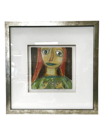 "Dress Up," original mixed media, float framed, by Daphne Covington, 19.5" x 19.