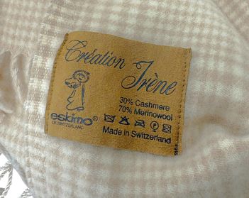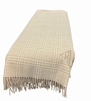Eskimo of Switzerland tan/beige plaid cashmere/Merino wool throw, 54" x 72"