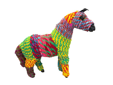 Multicolored Chindi fabric rope-wrapped horse, 12.5" h x 12" w x 4" d