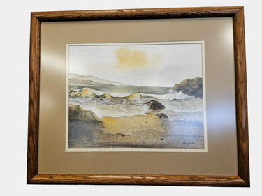 Framed Original Watercolor Seaside by J. Yount 18"h x 22"w