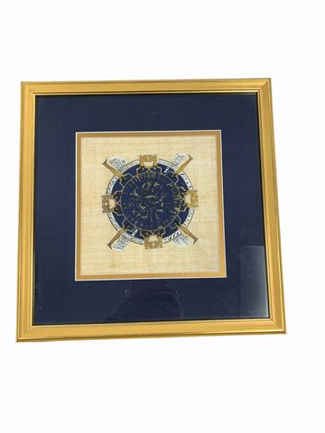 Framed Papyrus Painting Of The Ancient Egyptian Zodiac 13x13"