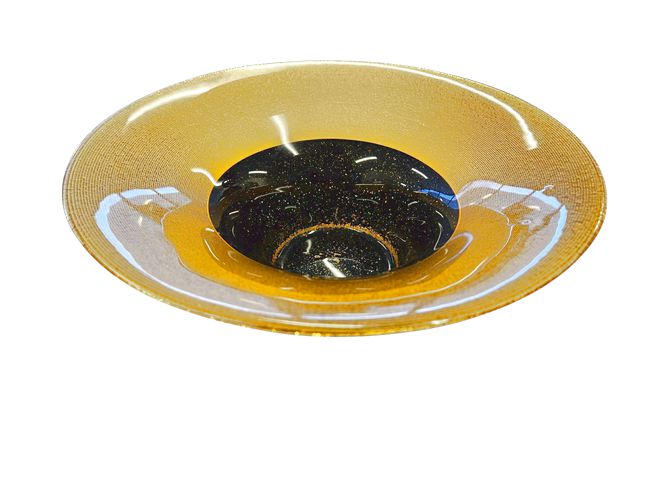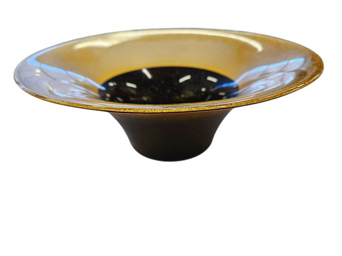 Gold and Black Art Glass Bowl 4"h x 11"Dia