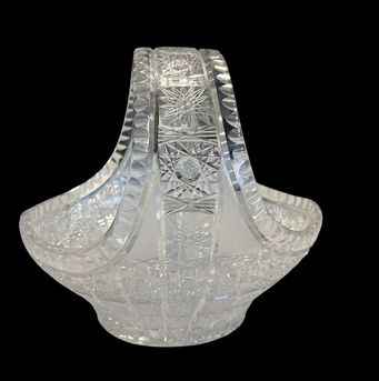 Hand-cut Bohemian "Queen Lace" lead crystal basket (Czechoslovakia), 9" h, 9.75"