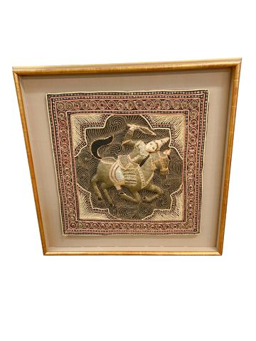 Hand Embroided Burmese Kalaga Tapestry Wall Hanging 25x27"