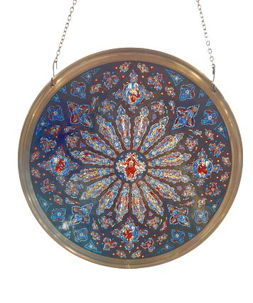 Hanging glass repro of Rose Window of St. John the Divine (NY),10.5" diam.