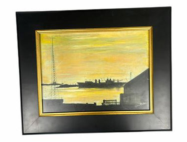 "Harbor in Black and Yellow," framed original pastel by Lori Ponder, 17.5" h x 2