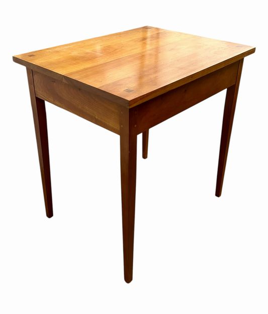 Harden Furniture of McConnellsville, New York, built a deserved reputation as one of America's finest producers of solid wood furniture, and this clean, well-proportioned side table is a quiet example of why. Since the 1930s, Harden has worked almost exclusively in native black cherry from New York forests, implementing an 18-step finishing process designed to produce pieces durable enough to become heirlooms. The warm honey-amber tone of this table's cherry top and tapered legs reflects exactly that — a finish that has aged gracefully and continues to deepen over time.