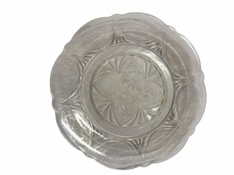 Hazel Atlas "Royal Lace" clear depression glass plate, 10" diam.
