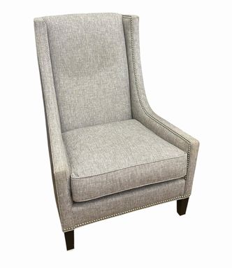 Kravet gray tweed Navarre chair, 44" h, 29" w, 30" d AS IS